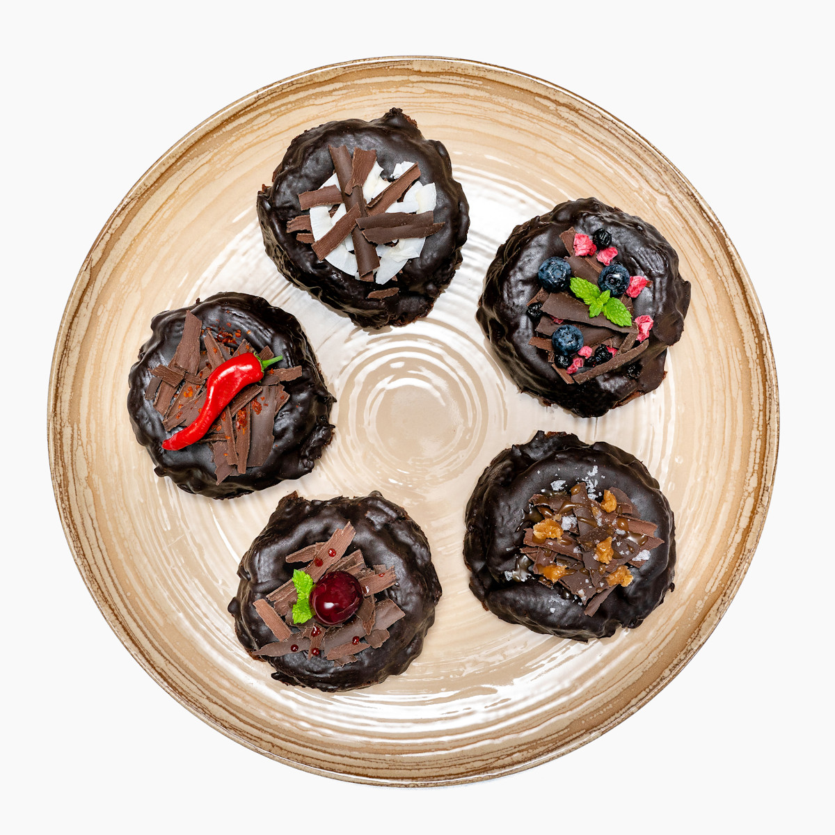 Představujeme náš exkluzivní degustační mix Čokodortů – perfektní řešení pro ty, kteří se nemohou rozhodnout, kterou lahodnou příchuť si vybrat. V tomto mixu najdete výběr čtyř našich nejoblíbenějších Čokodortů ve 10centimetrových degustačních velikostech, umožňující vám ochutnat rozmanitost naší nabídky.